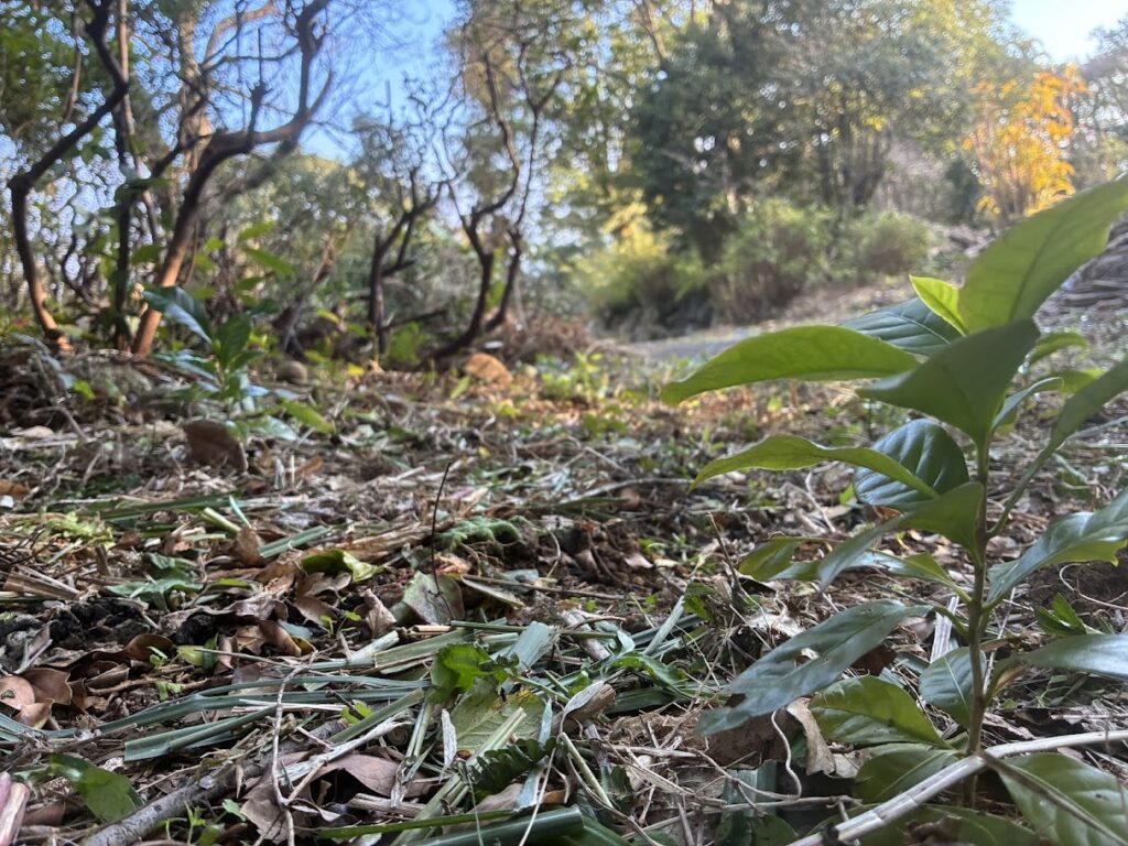 今回は春の収穫や苗植えに向けた、野菜の種蒔き、安納芋の種芋植え、自然で育ったコーヒーの木の周りに群生する若いコーヒーの間引きや植え替えも行いました。